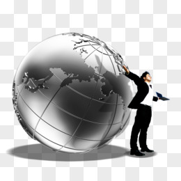 站在地球仪前伸开双手的男人