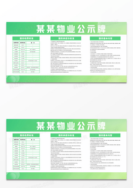 绿色简约物业公示牌服务收费标准与承诺服务基本内容宣传栏