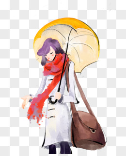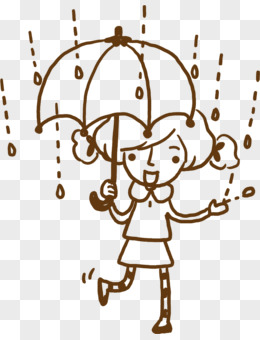 卡通手绘女孩雨天打伞撑伞免抠元素