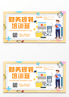 蓝橙色扁平化卡通会计培训课程宣传海报财务培训