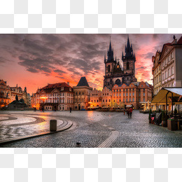 欧洲城市街道夕阳