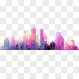 插画城市炫彩剪影免抠元素