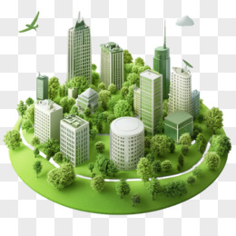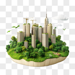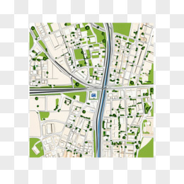 卡通一幅地图和定位标志和城市建筑免抠元素