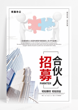 白色简约招募合伙人招聘海报