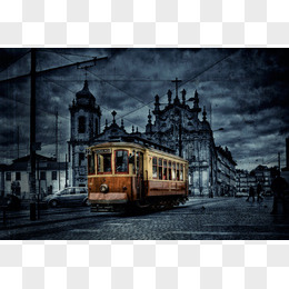 手绘卡通小清新创意黄蓝紫背景夜晚城市素材设计免抠