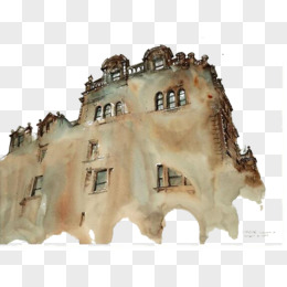 手绘渐变蓝色抽象点状城市免抠效果素材