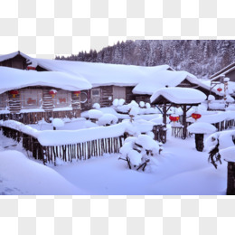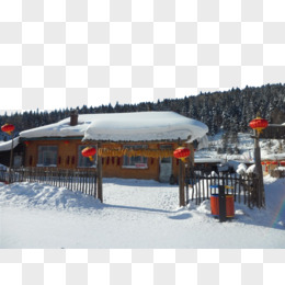 山林木屋雪景
