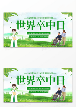 简约绿色自然风景融合卡通世界卒中日展板