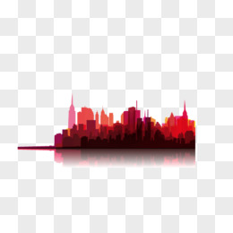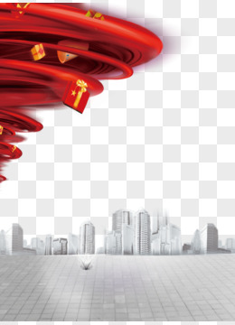金色剪影城市建筑和红色绸缎免抠元素