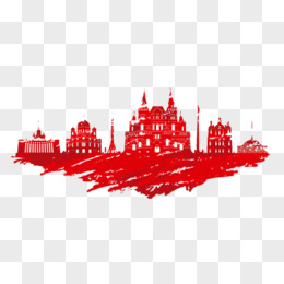 手绘红色点状城市免抠效果素材