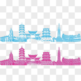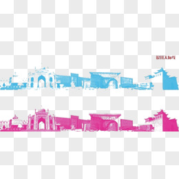 城市建筑 剪影 玫红色