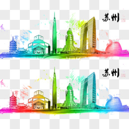 水彩城市建筑