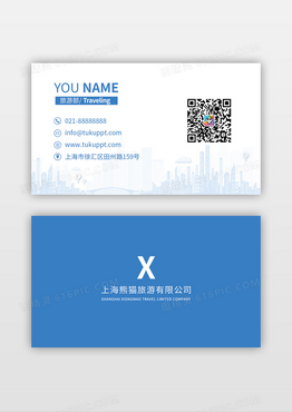 蓝色剪影风格旅游公司休闲娱乐名片设计