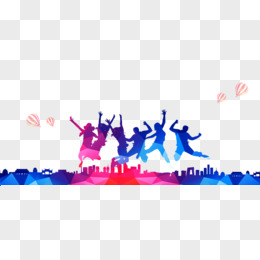 五四青年节城市活力剪影彩色背景渐变文艺人物知青活泼少年跳跃卡通素材