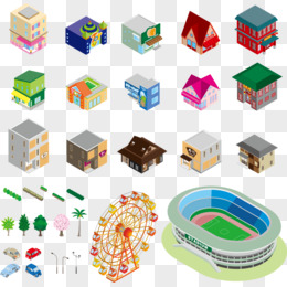手绘卡通小清新创意黄蓝紫背景夜晚城市素材设计免抠