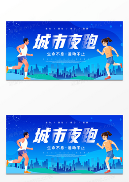 蓝色简约时尚大气城市夜跑运动宣传展板