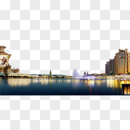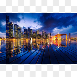 城市夜景倒映湖面