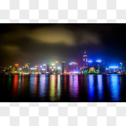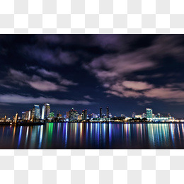 乌云下的彩色城市夜景