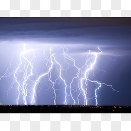 城市夜景与闪电