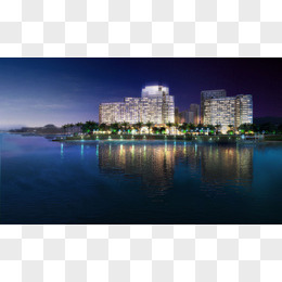 湖边城市夜景海报背景