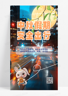 中秋假期安全出行城市夜景蓝色简约长图海报手机海报