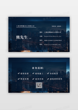 黑色装修装饰房地产公司房地产名片
