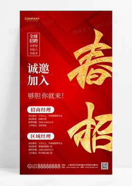 红色春季招聘人才招聘诚邀加入手机文案海招聘海报