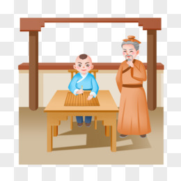 一组手绘插画孟母三迁成语故事插画套图合集元素一