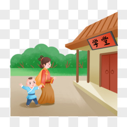 一组手绘插画孟母三迁成语故事插画套图合集元素二