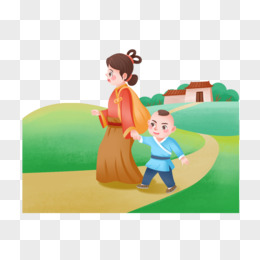 一组手绘插画孟母三迁成语故事插画套图合集元素三