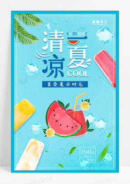 清凉一夏橙子柠檬水果夏日甜心海报设计