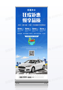 蓝色大气车主福利低价秒杀汽车促销展架易拉宝