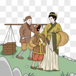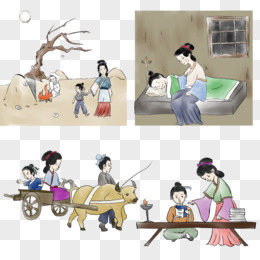 手绘孟母三迁场景免抠元素