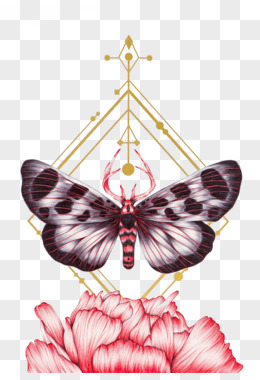 水墨蝴蝶和鲜花免抠元素