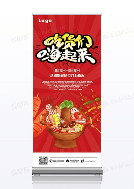 红色简约大气烤串吃货嗨起来美食易拉宝展架