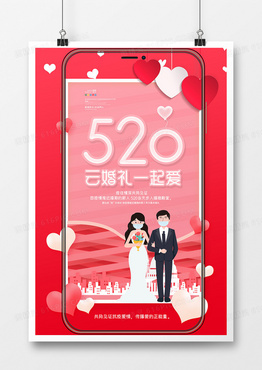 简约大气520云婚礼一起爱疫情结束我们结婚宣传海报