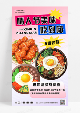 粉色渐变情人节美味吃到嗨美食手机海报创意海报