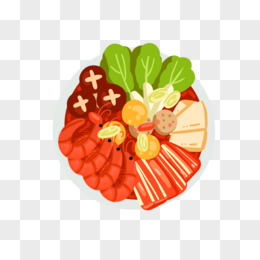 手绘卡通团圆饭年夜饭鲜虾汤元素