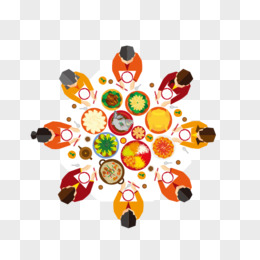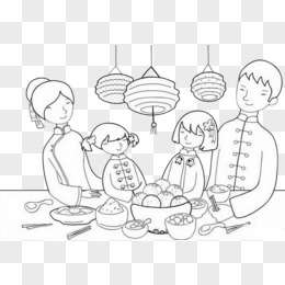 手绘团圆一家人吃饭素材
