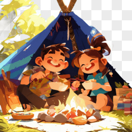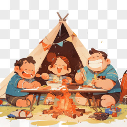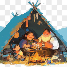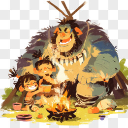 原始人围在篝火旁吃饭的免抠元素