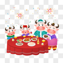 牛年春节吃年夜饭吃饭团圆饭场景元素