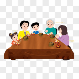 漫画一家人围着桌子吃年夜饭