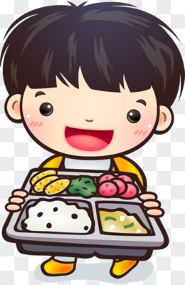 一组手绘插画风寒假小女孩作息时间套图之吃饭时间元素