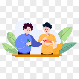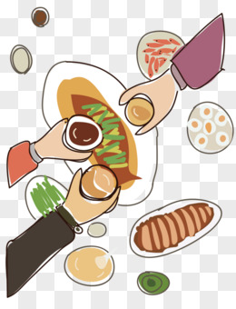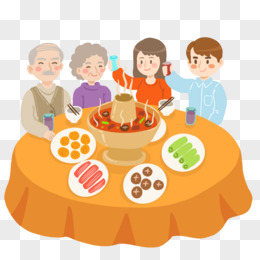 手绘卡通团圆温馨年夜饭场景免抠元素