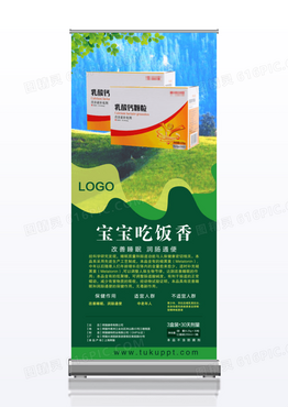 绿色产品宝宝吃饭香宣传海报保健品x展架