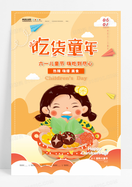 卡通创意儿童吃饭吃货童年六一儿童节海报
