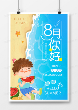 手绘卡通立夏男孩女孩在湖边吃瓜场景免抠素材