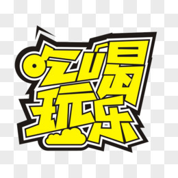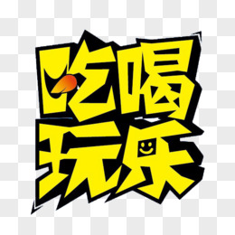 黄色吃喝玩乐艺术字
