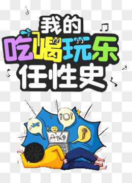 矢量膨胀风立体吃喝玩乐艺术字设计模板
