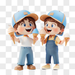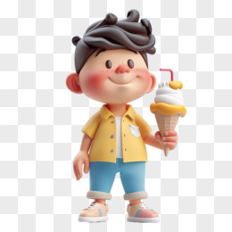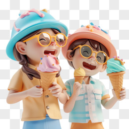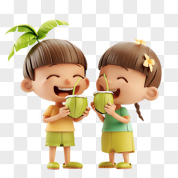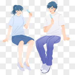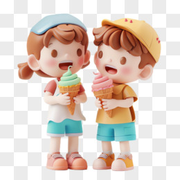 卡通手绘可爱的小女孩吃冰冷饮免抠元素
